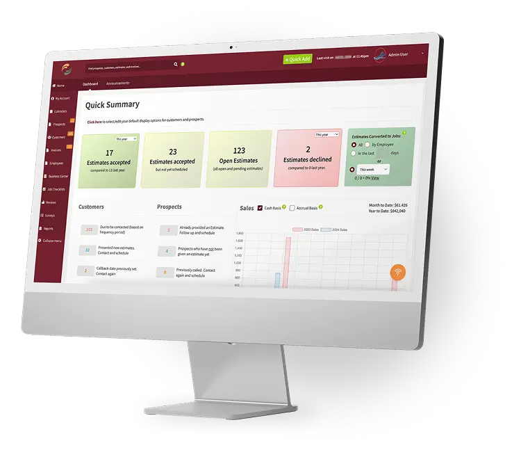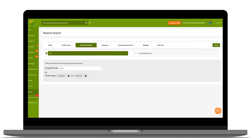 The Customer Factor provides you the ability to search for any kind of report you need. Sales, Profit & Loss, Employee pay/hours/mileage, Sales tax collected, Expenses, Income Forecast, how many estimates you’ve presented, what marketing method works best, customers scheduled within certain time frames, customer who haven’t been serviced in x number of months/years, and literally dozens more!