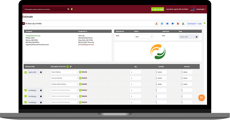 Ah…the lifeblood of any service business. As you know not every call or contact becomes a job right away, so we put them in as “prospects” or you can create estimates for existing customers.