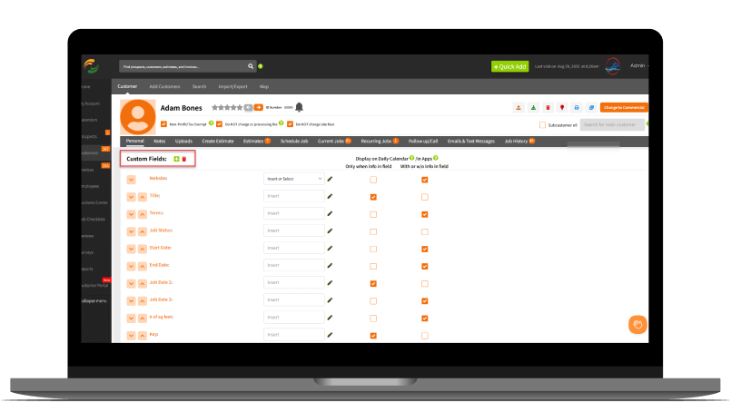 Want to keep track of birthdays? Do you want to list pricing for each item or service you provide to a customer? Need to keep track of their square footage? Or maybe you just want to include their website for future reference. And you can search for custom fields and even include custom field info within emails. So many uses for custom fields. And again, it’s unlimited!