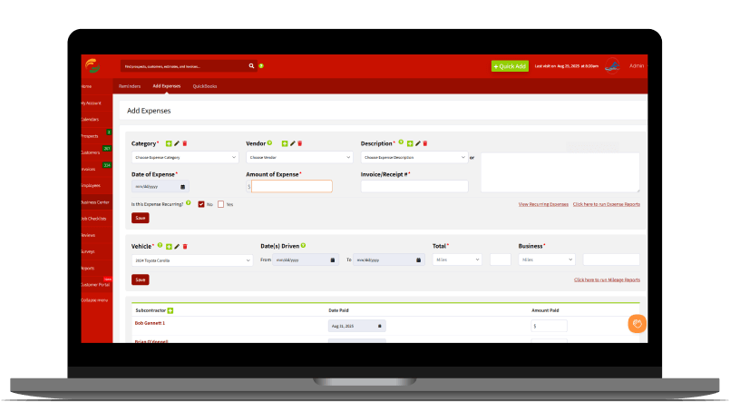 In order to provide accurate Profit & Loss reports for your business, there needs to be expenses, so here you go! Insert any expense by selecting the category, date, vendor, a description, amount, etc. If it’s a recurring expense like monthly insurance you can even just set it up once and forget about it.