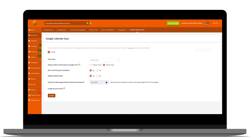 If you use google calendars, you’ll be glad to know that our calendars sync up with google. So when you schedule appointments in The Customer Factor, they’ll appear in Google almost simultaneously.