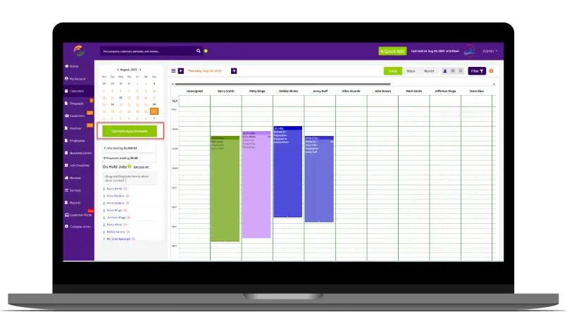 And you can optimize your appts (map them), pay multiple invoices, process payments for customers with stored credit cards, create tasks, and personal appointments, and so much more! Our calendars are built to save you some serious time!