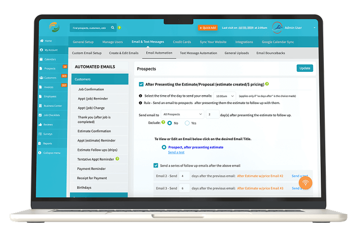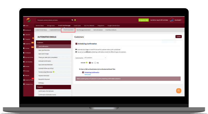 You can never have enough automation when it comes to running a service business. So we have you covered when it comes to automation. Completely hands off. Job confirmations, Appointment reminders, thank you notices, receipts, payment reminders, appt change notices and more!