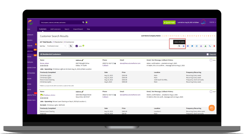 Besides being able to personalize emails and text messages within The Customer Factor, you can also personalize letters (postcard mailing coming soon). It might be a bit “old school” but sending letters to customers is a definite plus. Strengthen your relationships even more. You can print and send reminder letters, follow up letters, thank you letters, special “new service announcement” letters, and much more. You can print an individual letter or multiple letters all with a single click of a button.